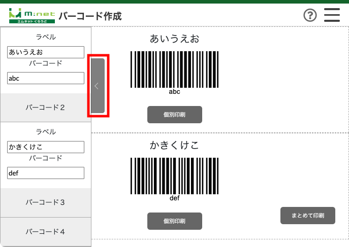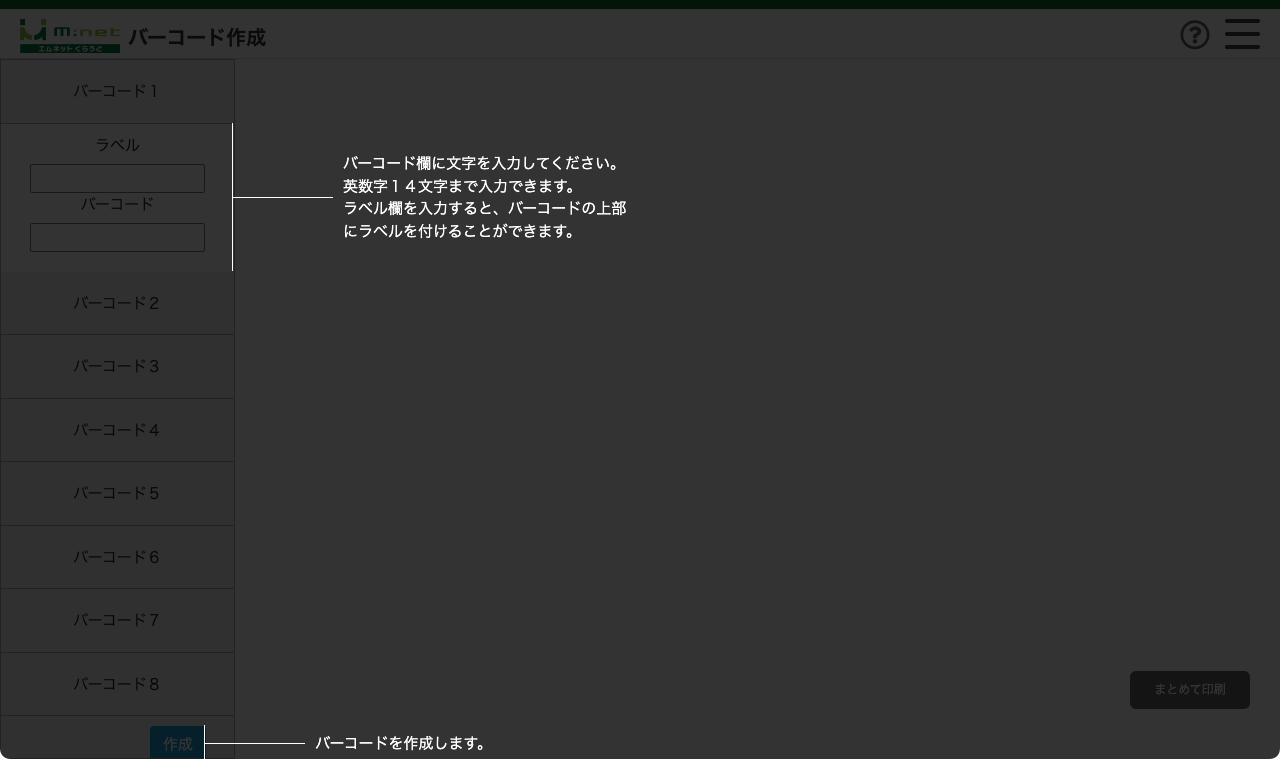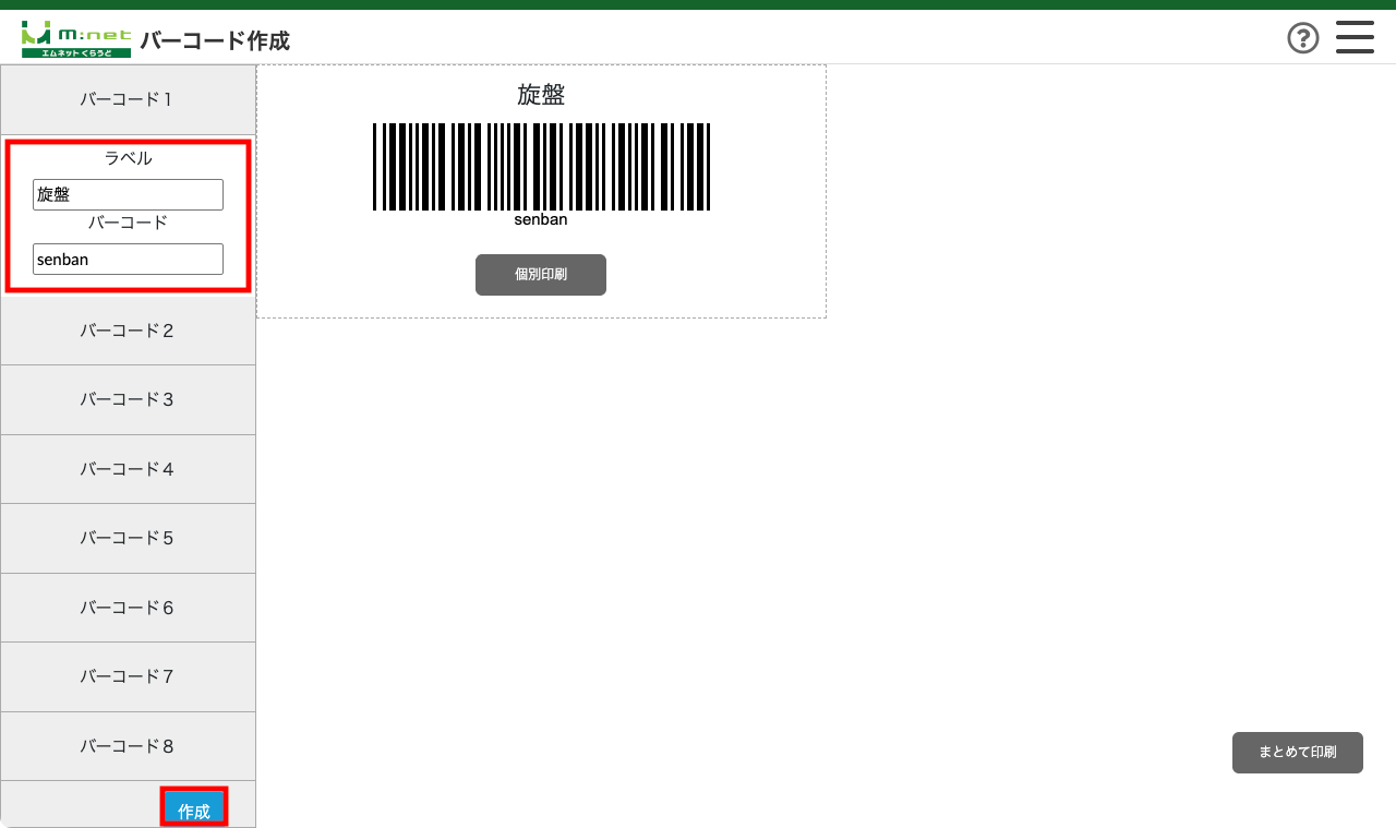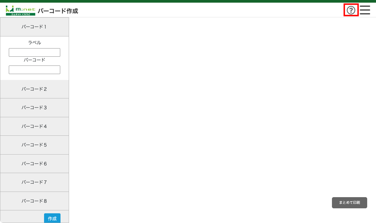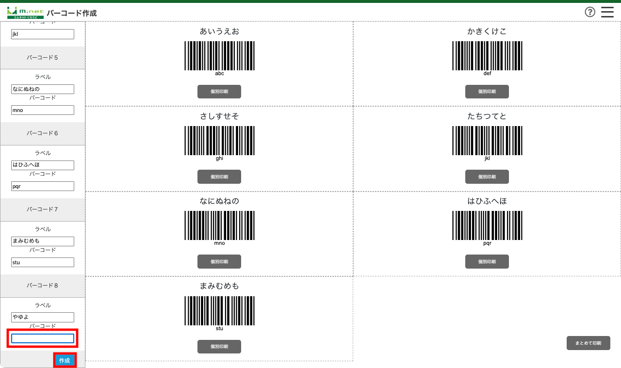 バーコードをまとめて印刷したい場合は、画面右下にある「まとめて印刷」ボタンをクリックしてください。