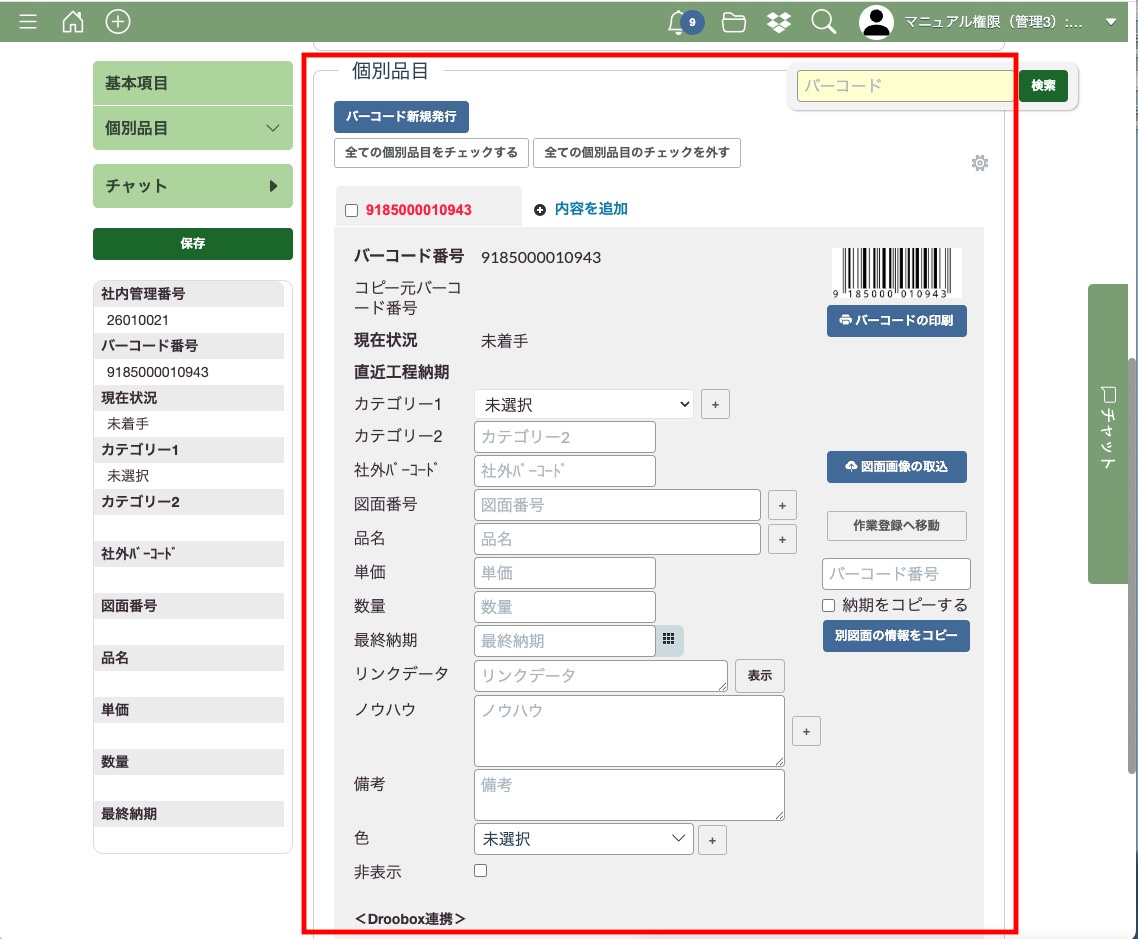 個別品目では、自動的に「個別品目のバーコード番号」が発行されます。
