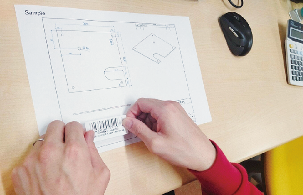 エムネットくらうどにはバーコードを発行する機能があります。円滑にご利用いただくために、「社内管理番号」と「個別品目のバーコード番号」の2つのバーコードを印刷し、図面もしくは指示書などに貼付して管理する方法をおすすめしています。