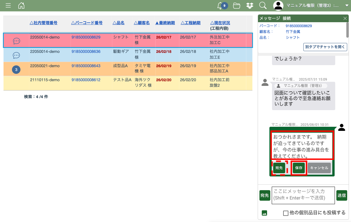 メッセージの編集が可能になりますので、編集をおこなったら「保存」ボタンを押してください。