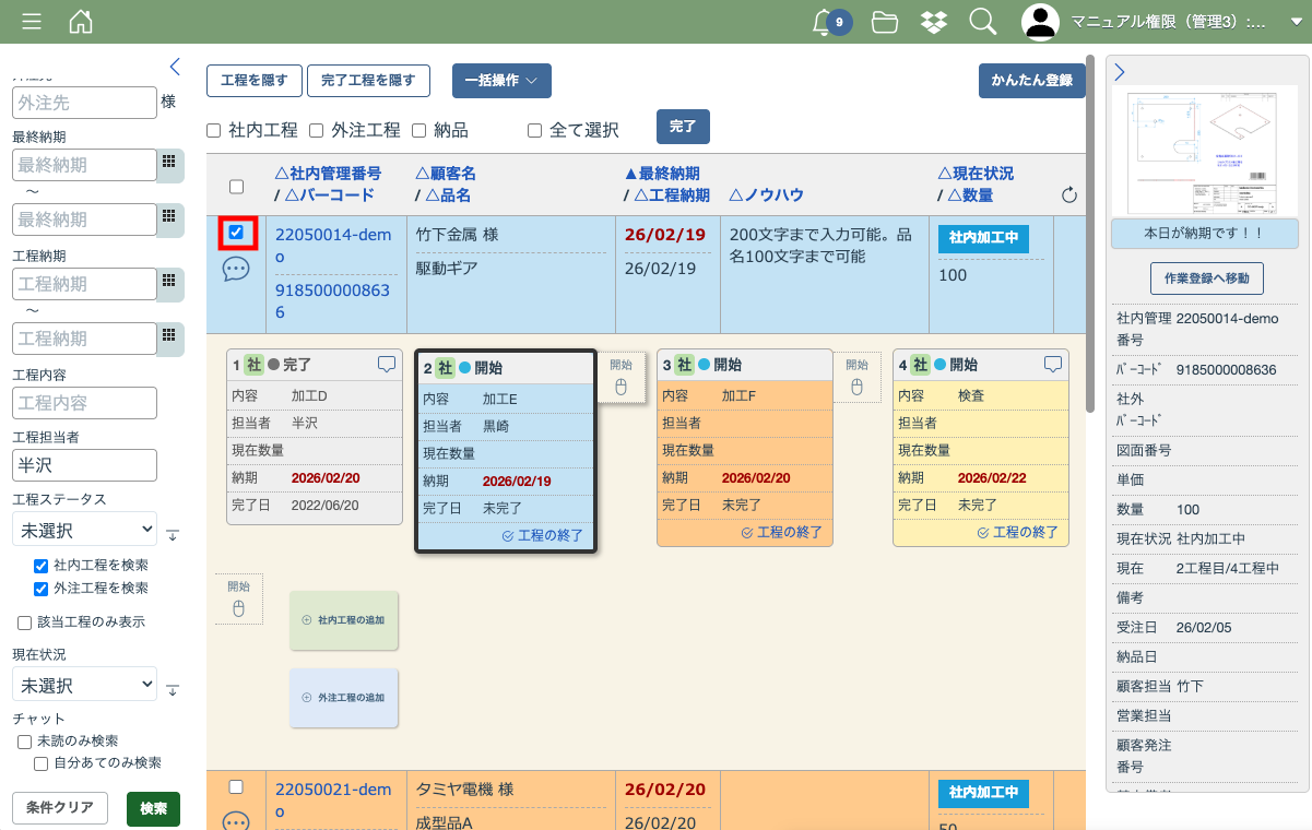 メニュー画面にある「工程一覧」から工程一覧画面を開きます。