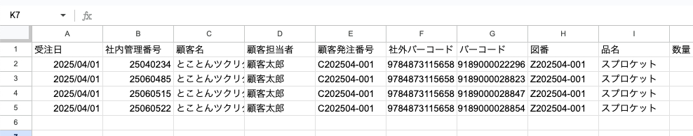 受注一覧のcsvファイルがダウンロードされます。