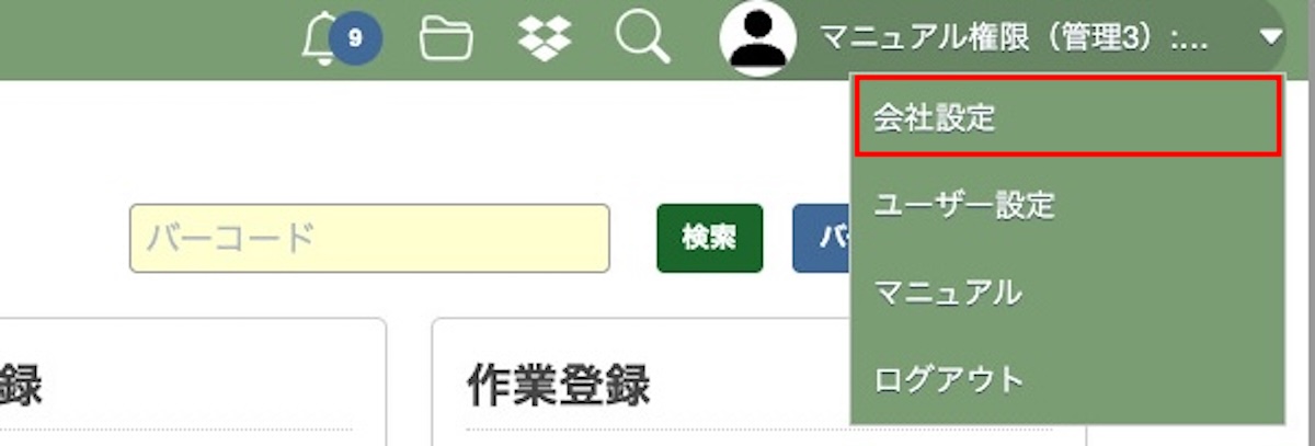 メニューが表示されたら「会社設定」を選択してください。