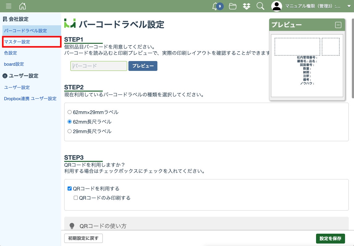 マスター利用設定を行う