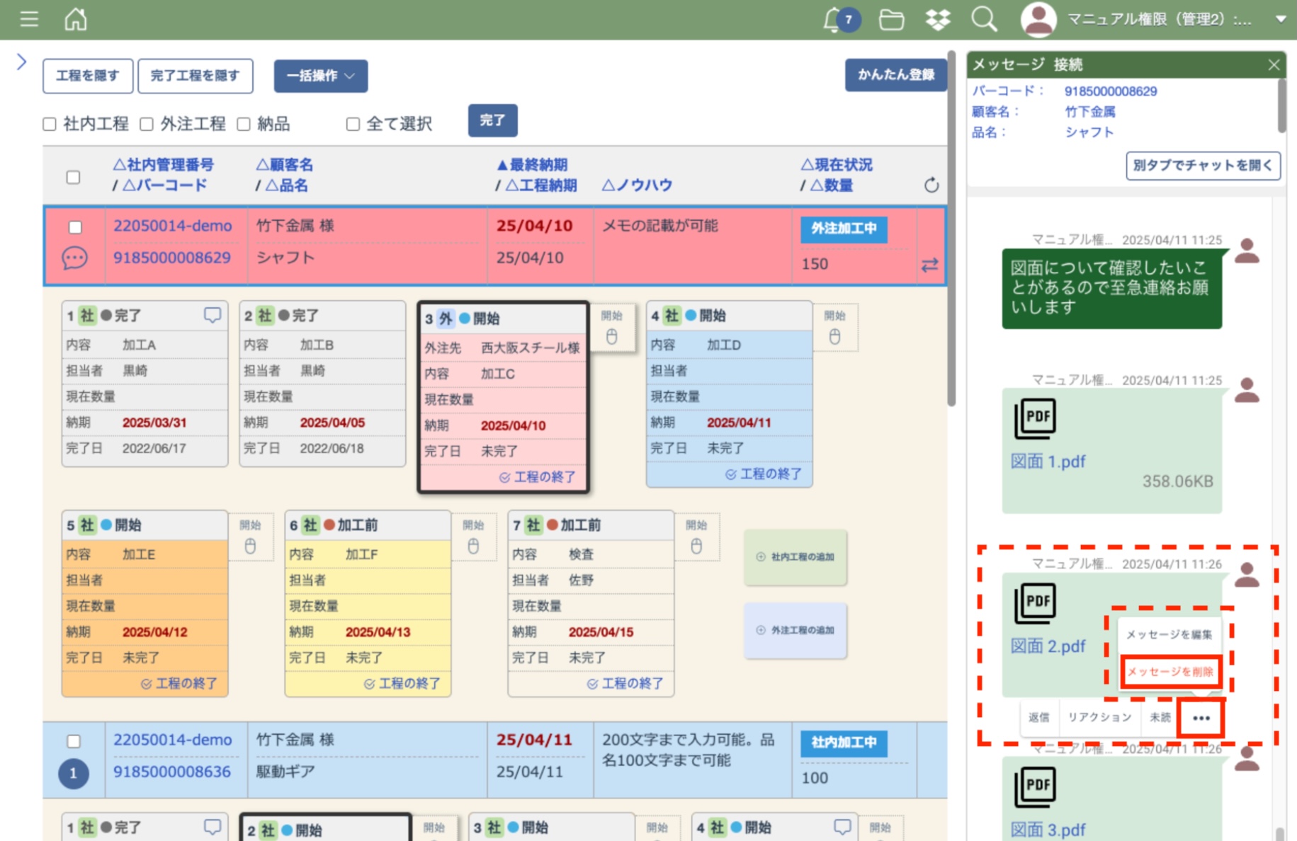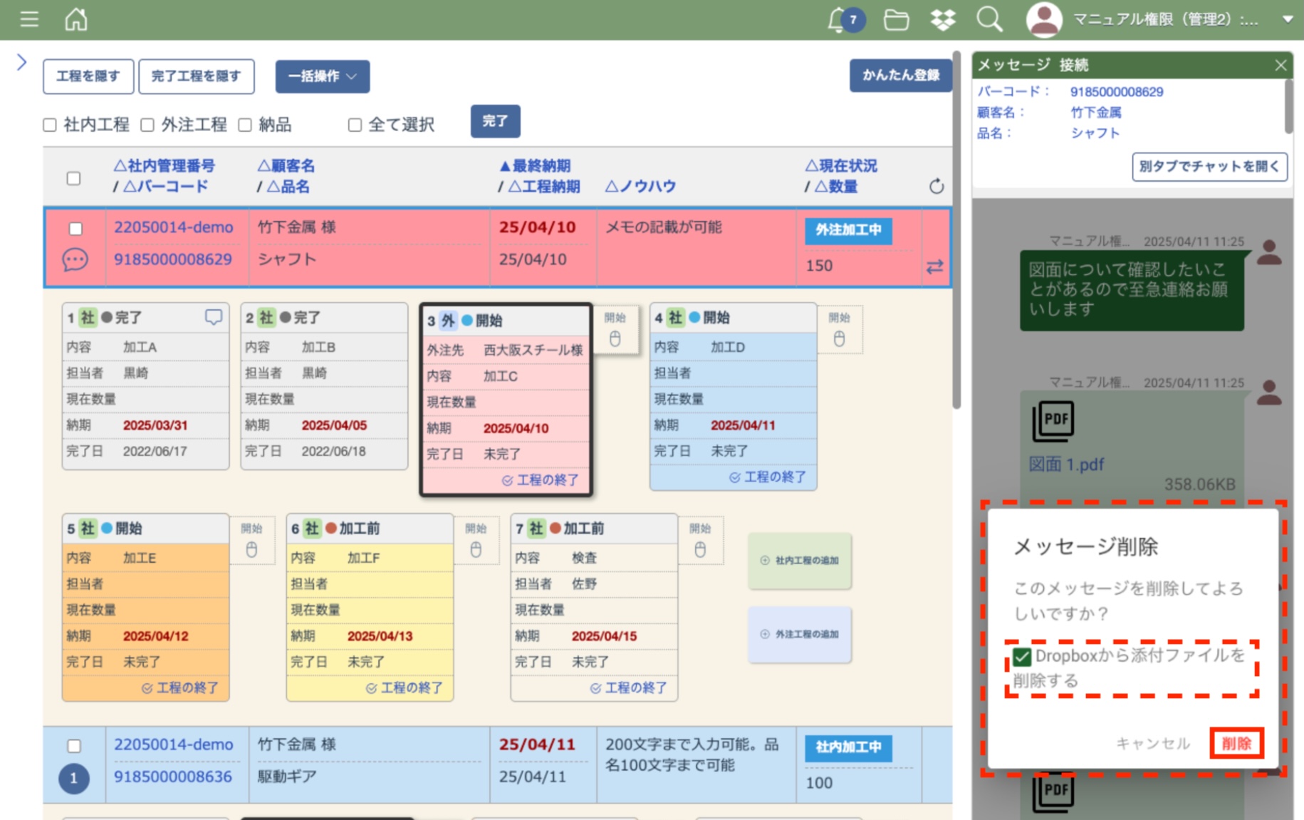 メッセージと共に添付ファイルも削除する場合はチェックを入れてから削除を行ってください。