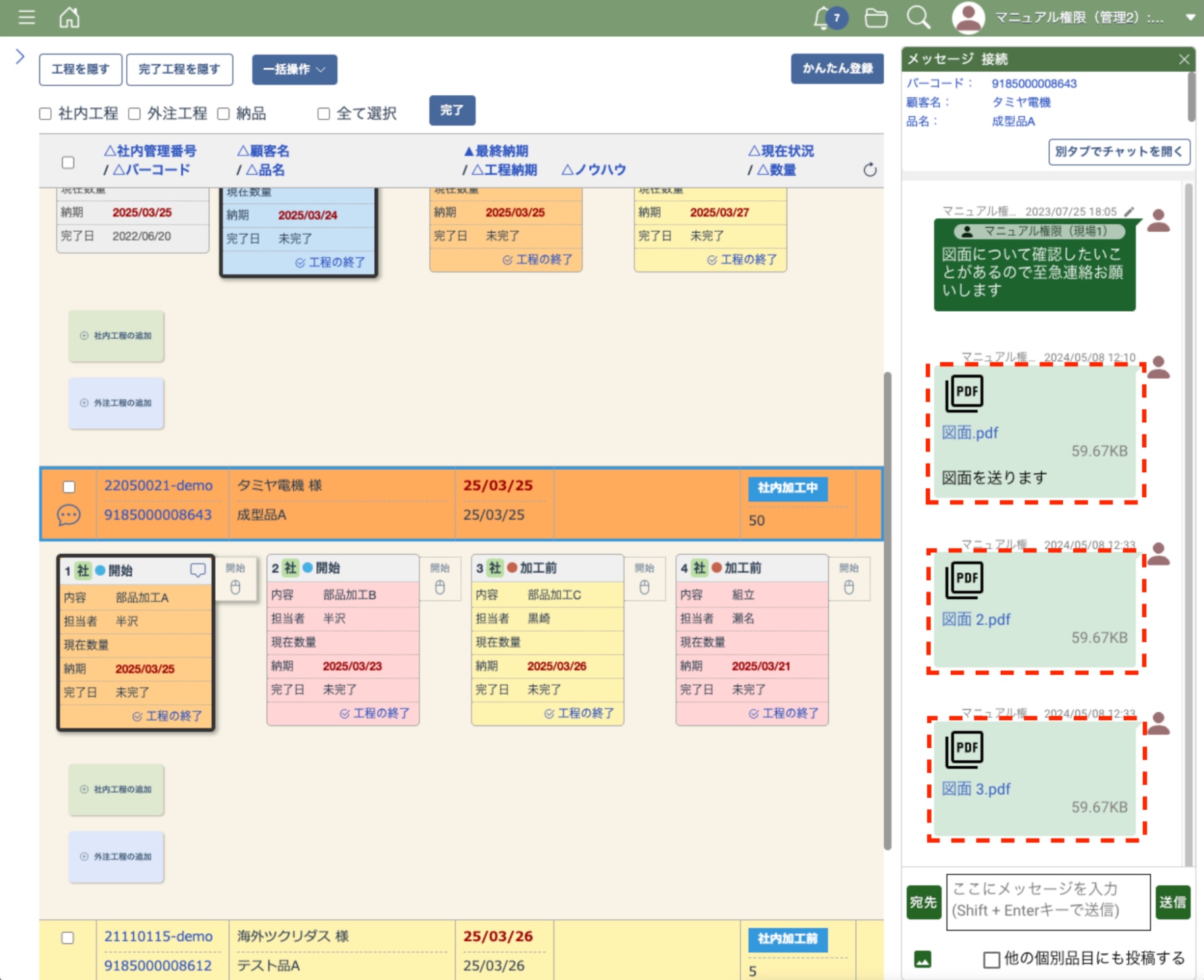 工程一覧画面