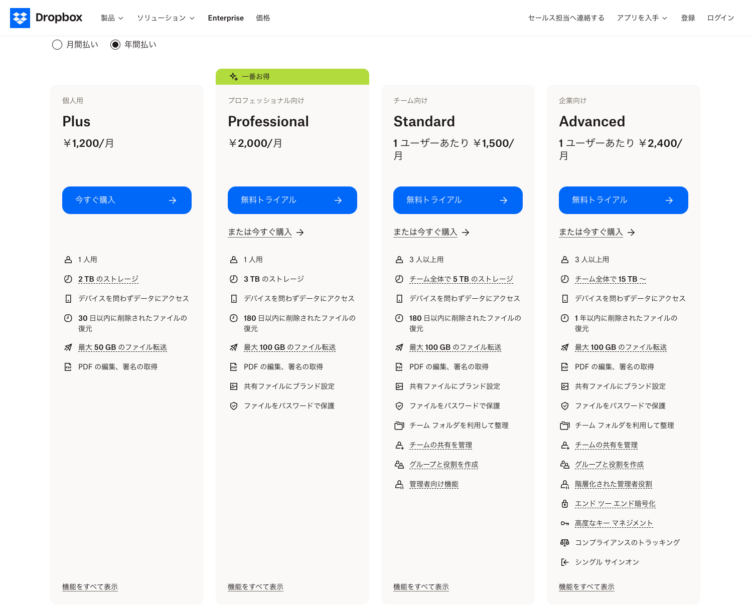エムネットくらうどのDropbox連携機能は無料で利用できますが、Dropboxを利用するためには別途Dropboxのプランへのご登録が必要となります。