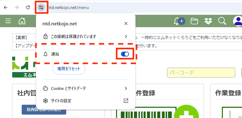エムネットくらうどにログインして通知を許可する