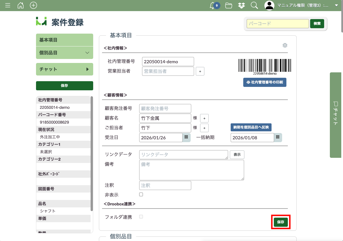 まず、編集したい案件の案件登録画面を開きます。案件登録画面の開き方の詳細はこちらをご覧ください